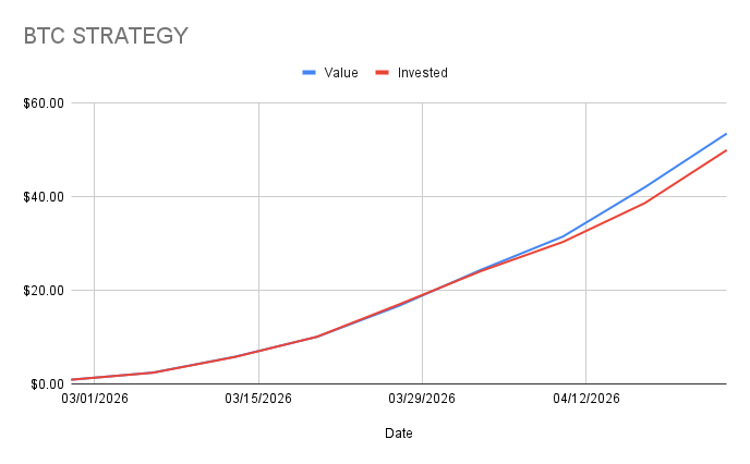 This week we allocated 9% of the total options income from the Ethereum strategy to purchase spot BTC, increasing our holdings to 0.00054358 BTC