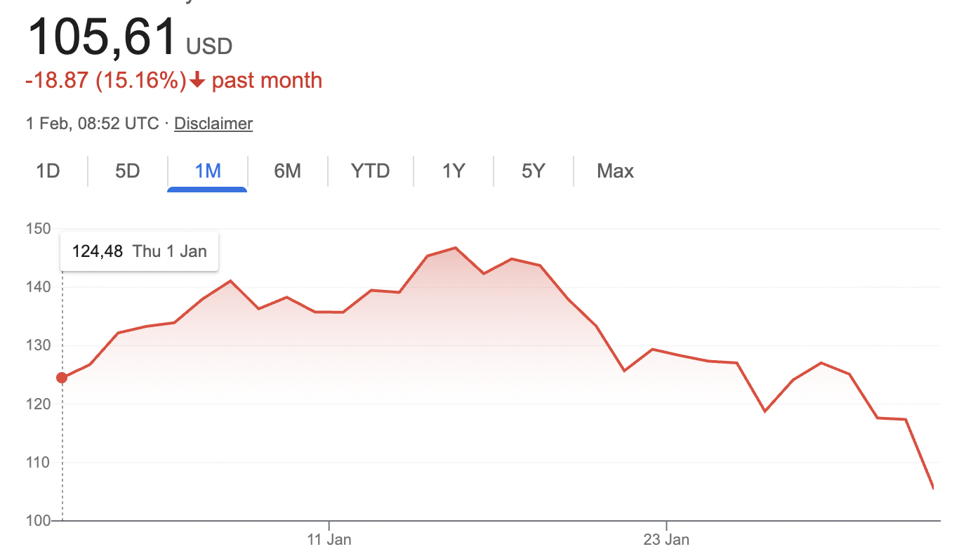 January 2026 was largely range-bound for SOL, with the price trading for most of the month in the $120–$145 range. However, in the final days of January, SOL sold off sharply, dropping to approximately $105.