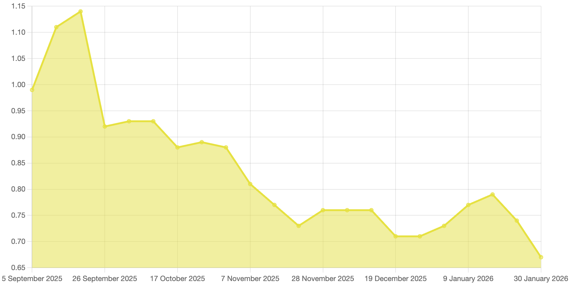 On a month-over-month basis, SOL declined from roughly $125 to $105, reflecting a meaningful late-month drawdown after several weeks of relative stability.
