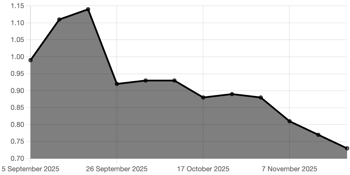 Our open-ended Solana Covered Call Growth Fund also followed downtrend, but not as massive, declining by just -4.7%, with the NAV per unit now at $0.73. The fund operates without leverage, so the drawdown poses no structural risk — we simply ride out the market move. Additionally we are already holding 31.18 SOL with break even price $178.9
