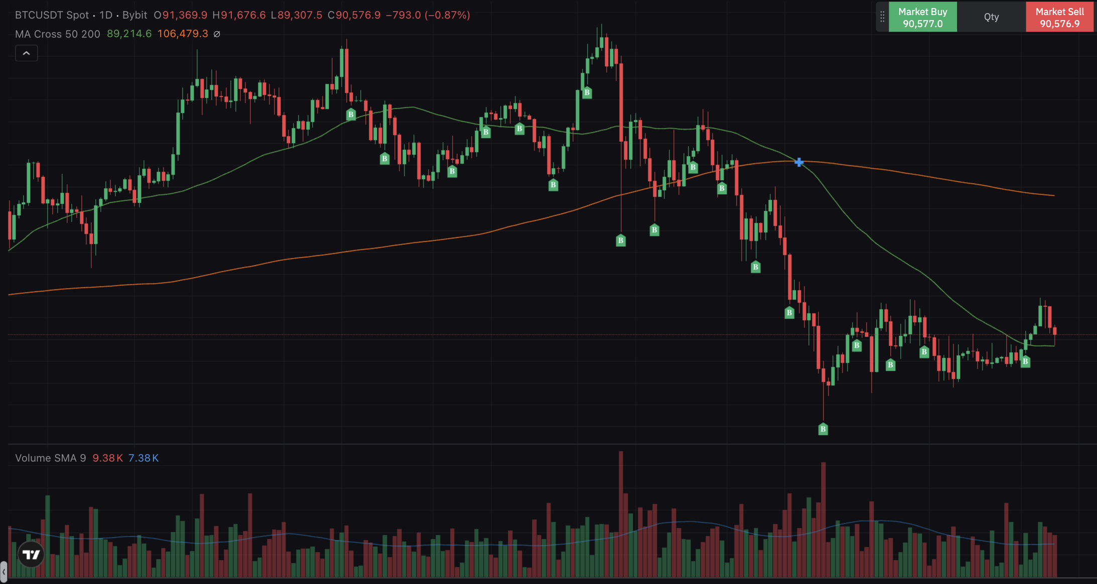 Bitcoin has finally broken above its 50-day moving average, trading at $90,600 as of writing this article. While a short-term pullback has followed, a steeper recovery toward the 200-day moving average near $106,000 remains plausible. That said, it is still too early to confirm this scenario: bears could regain control, pushing BTC back below the 50-day moving average and invalidating the thesis.